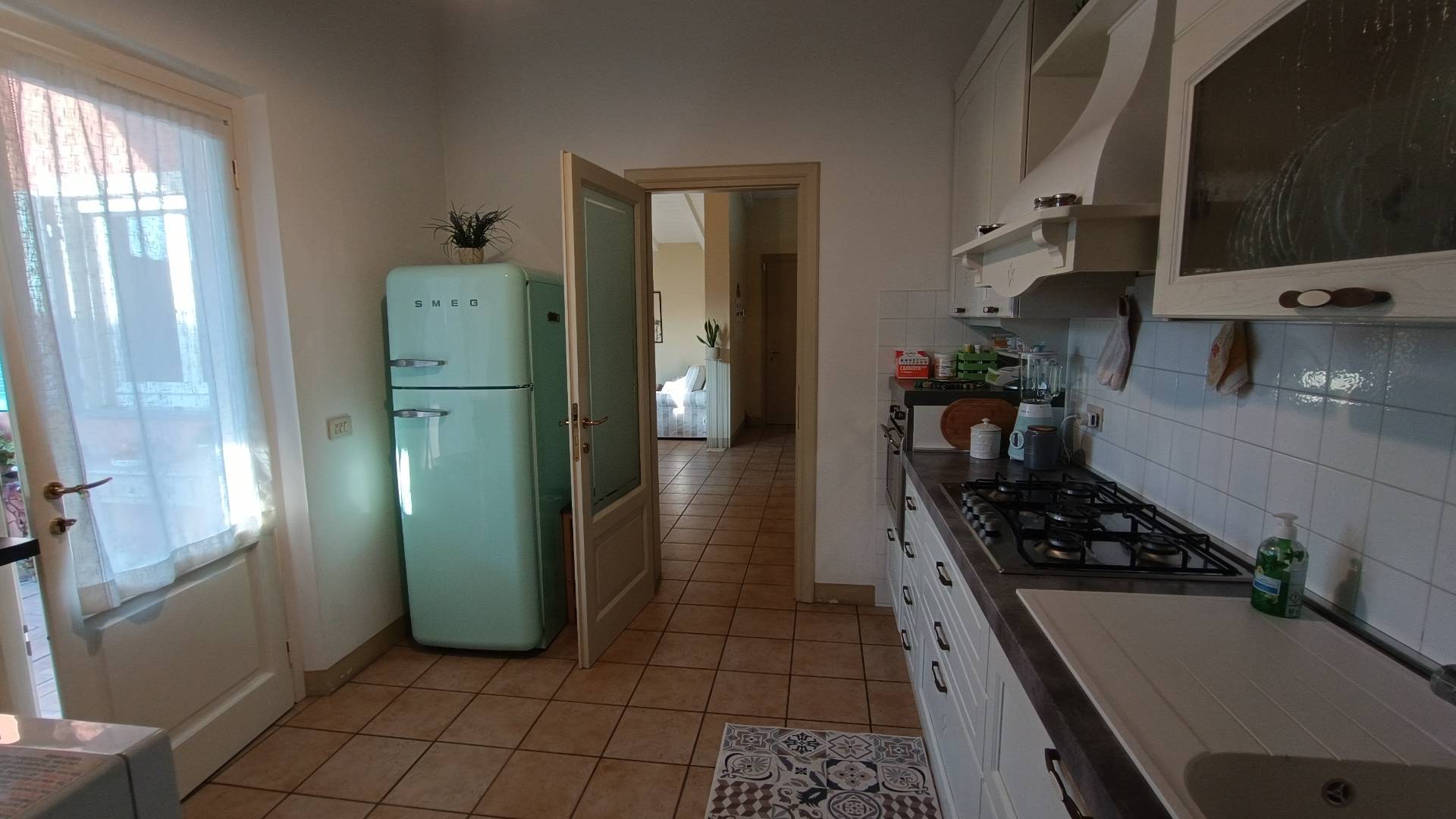Composta da ingresso, soggiorno, cucina con dispensa, tre camere e due bagni. Si presenta come nuova, rifiniture e arredi chiari e le tante aperture valorizzano la naturale luminosità.