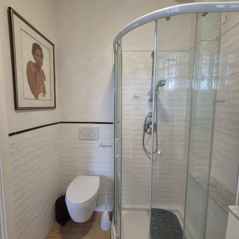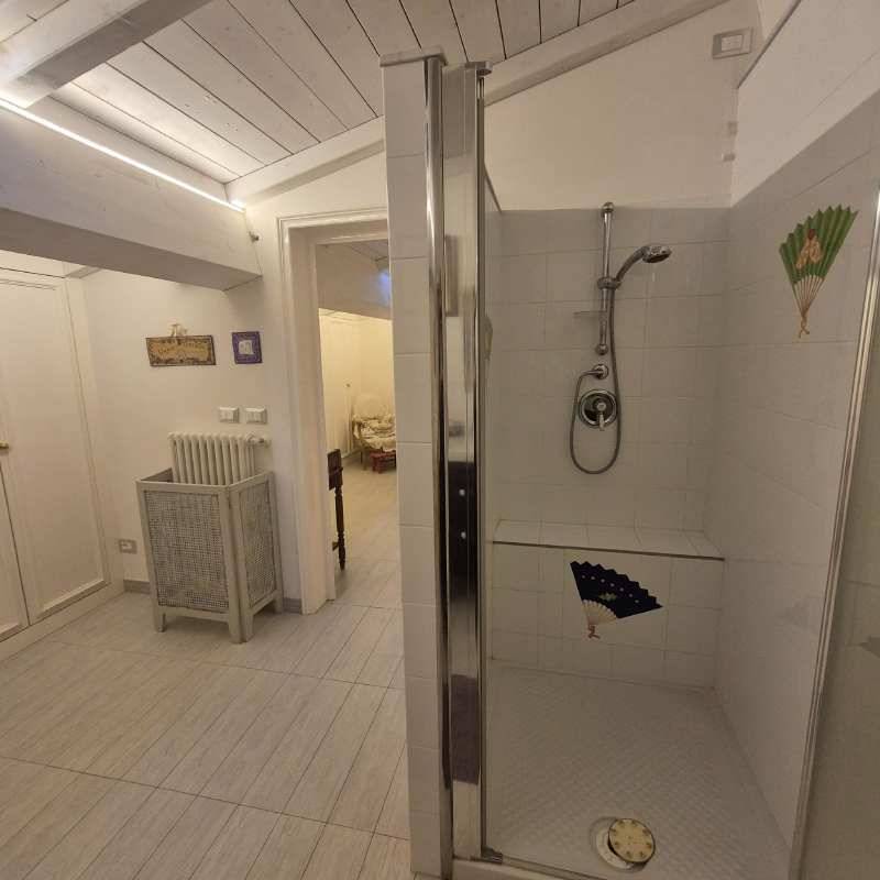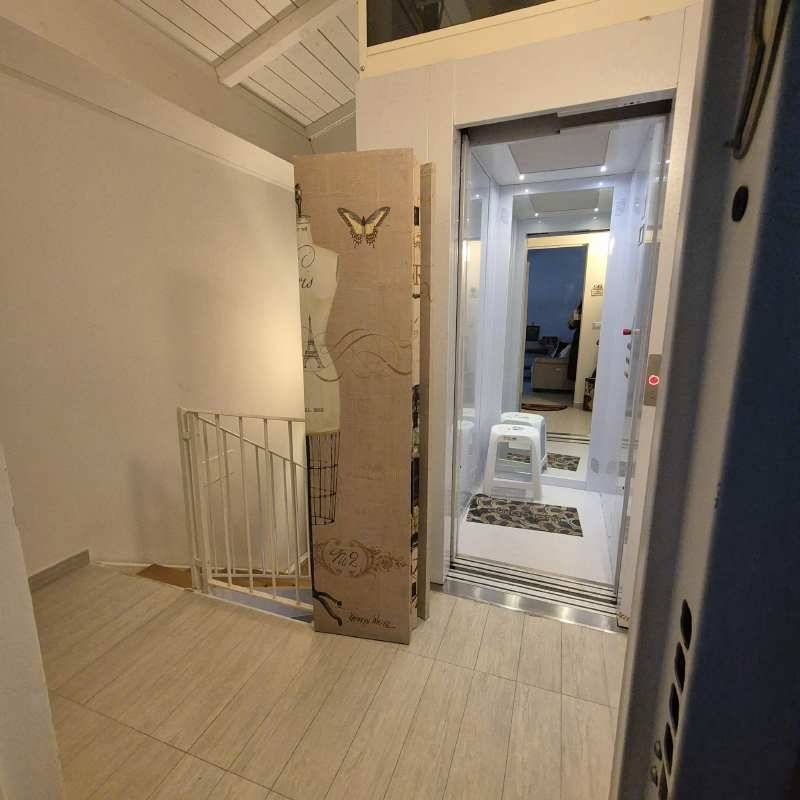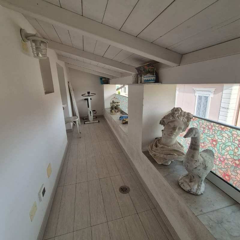 Si prosegue al secondo piano leggermente più piccolo dei piani inferiori mq. 82 a cui arriva anche l'ascensore: ingresso-sala zona giorno, camera matrimoniale mansardata con armadio su misura, bagno grande con zona armadi, doccia, bellissimo tetto a vista colore bianco in legno, terrazzina coperta con vista Apuane. L'ultimo piano è utilissimo anche per chi necessita di una zona indipendente ma facente parte dell'immobile.