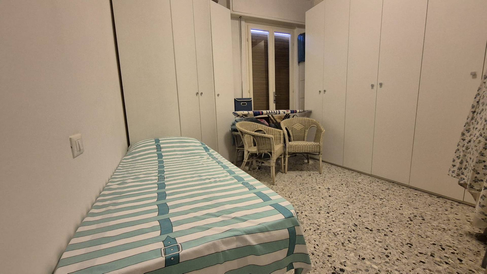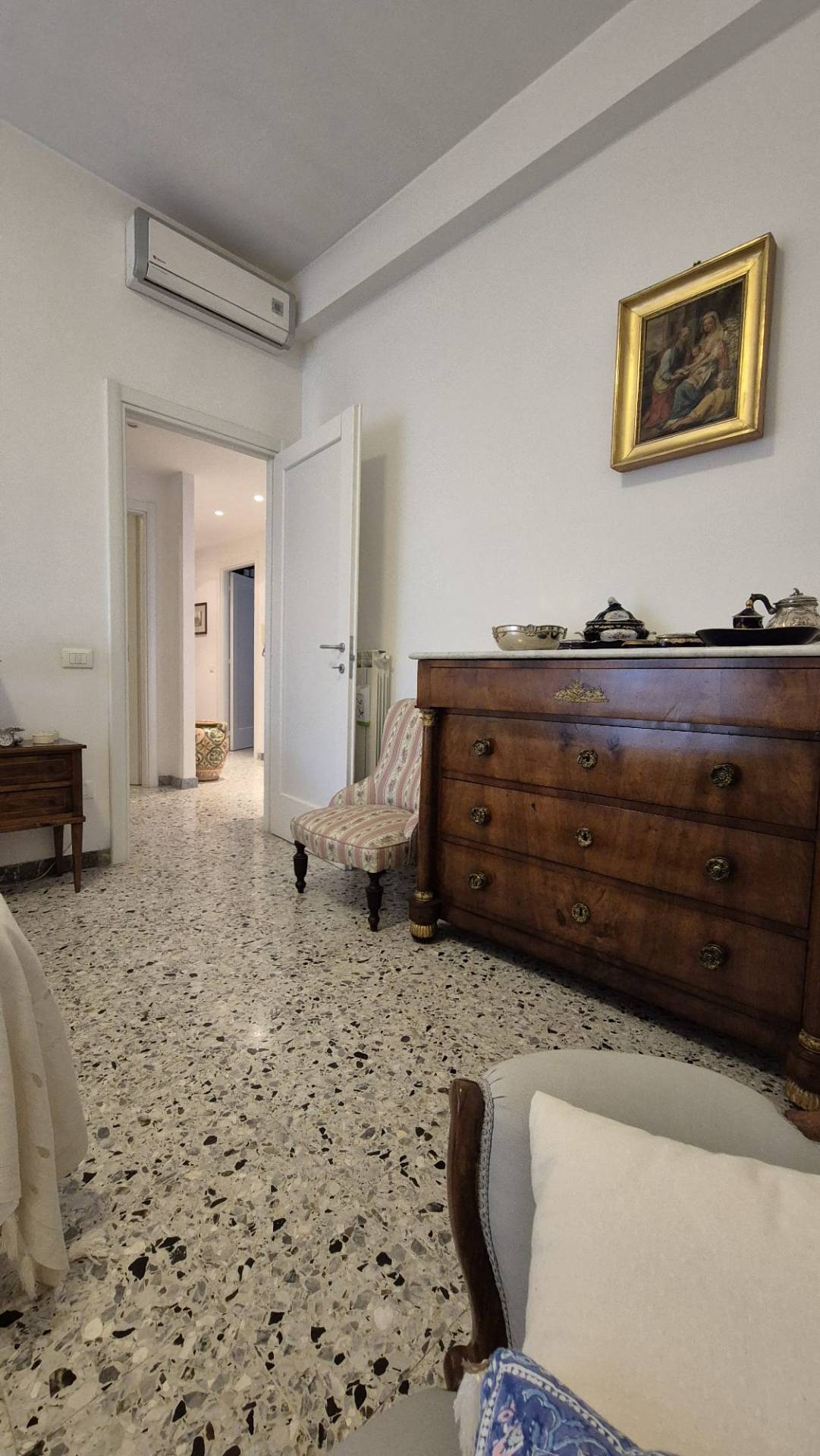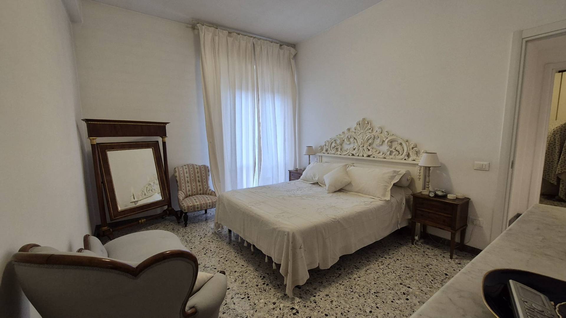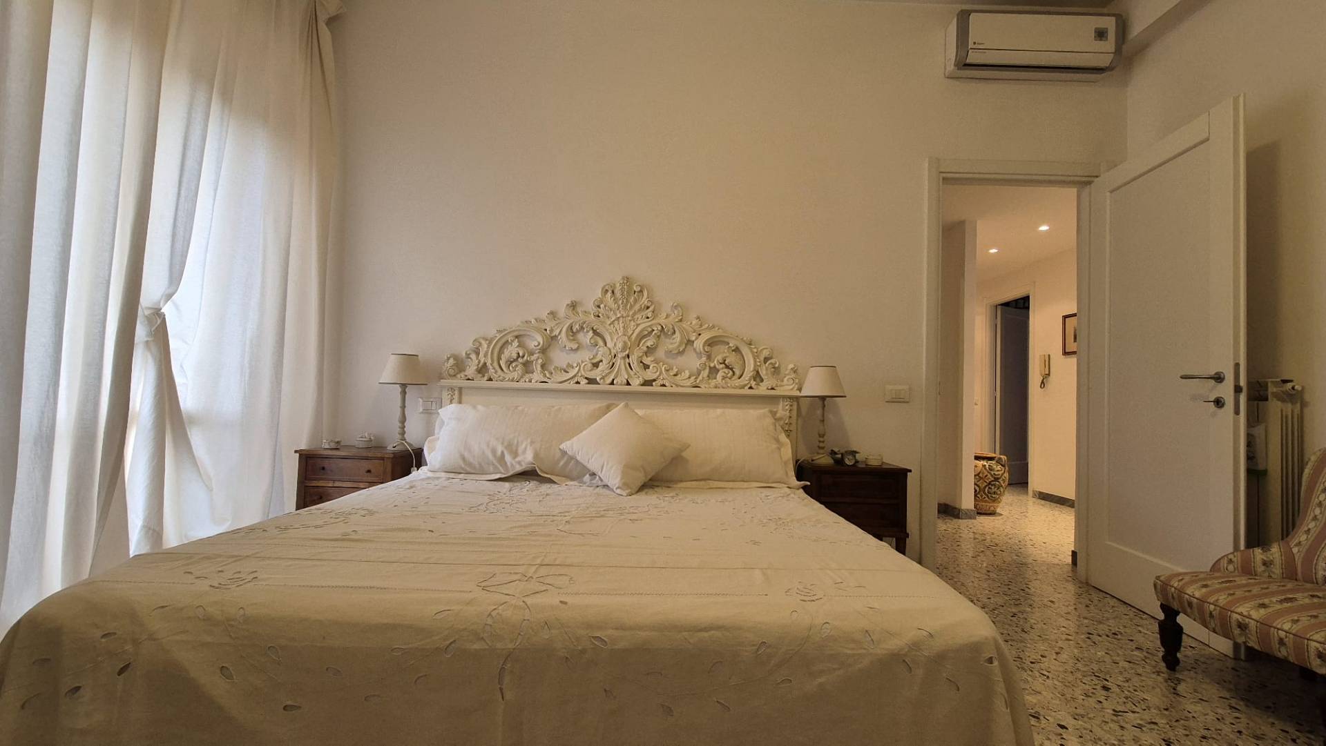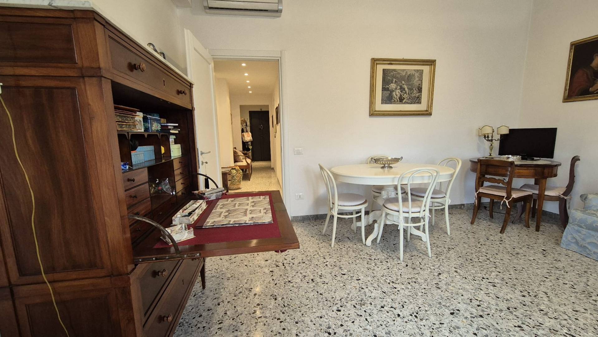 La zona è presso la ex Pretura, servito da tutti i servizi e molto vicino anche al mare utilizzando la bici ( 5 minuti) o a piedi circa 10/15 minuti. Zona di facile parcheggio. Termo singolo e Aria Condizionata. L'Appartamento si suddivide in ingresso che disloca tutte le stanze molto largo utilizzato dall'attuale proprietà quale zona libreria, cucina abitabile con attigua dispensa e terrazzina di servizio, ampia sala soggiorno con altra terrazza, tre camere matrimoniali, bagno con doppio lavandino.