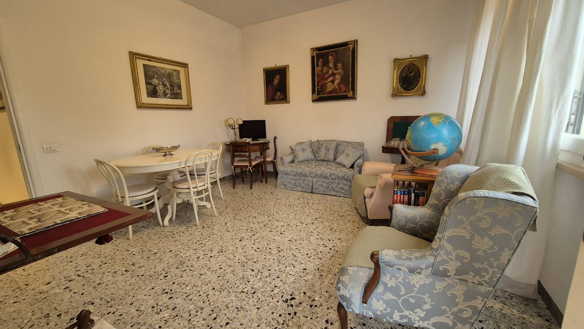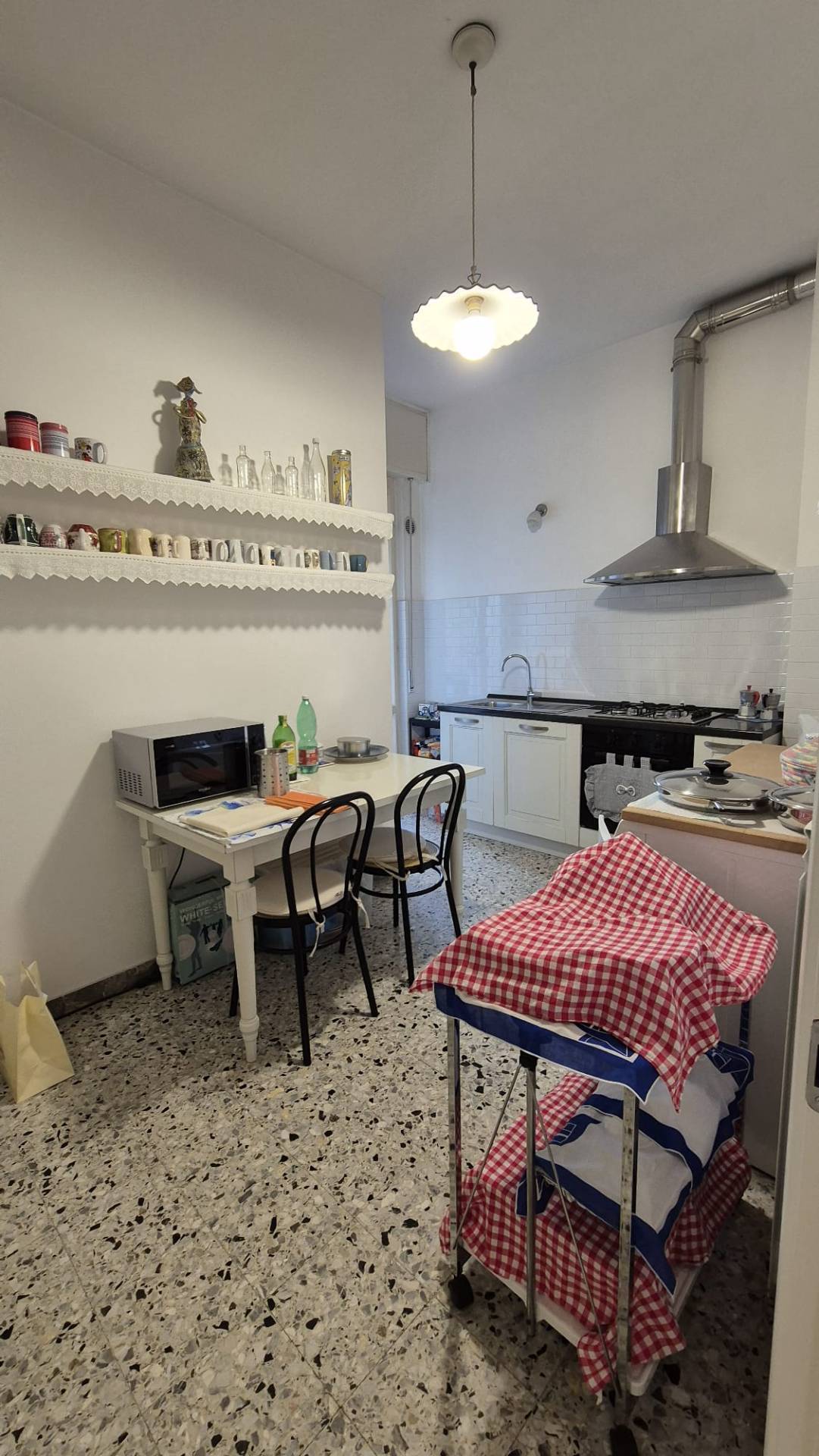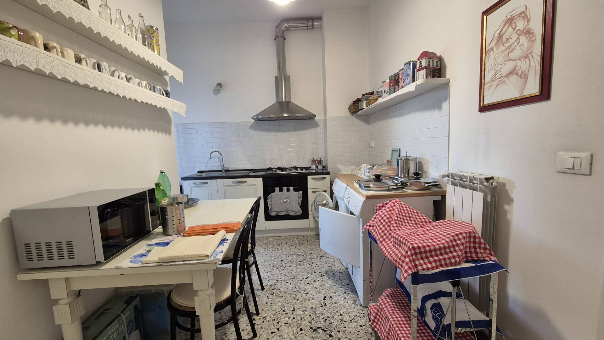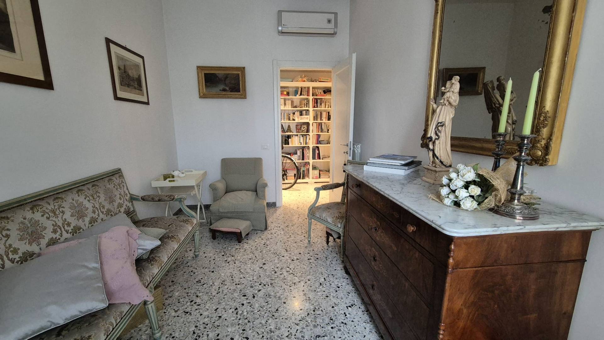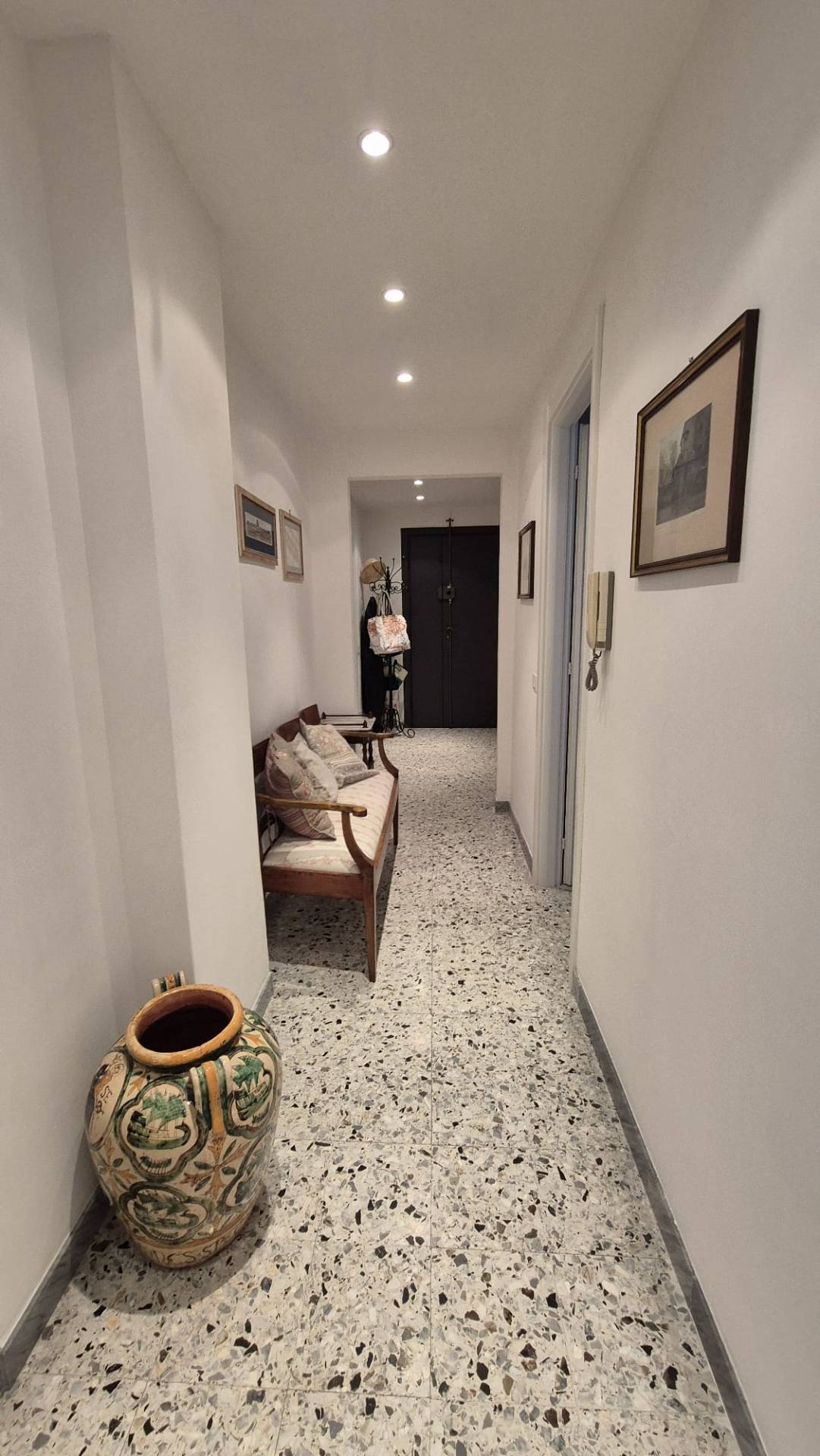 La zona è presso la ex Pretura, servito da tutti i servizi e molto vicino anche al mare utilizzando la bici ( 5 minuti) o a piedi circa 10/15 minuti. Zona di facile parcheggio. Termo singolo e Aria Condizionata. L'Appartamento si suddivide in ingresso che disloca tutte le stanze molto largo utilizzato dall'attuale proprietà quale zona libreria, cucina abitabile con attigua dispensa e terrazzina di servizio, ampia sala soggiorno con altra terrazza, tre camere matrimoniali, bagno con doppio lavandino.